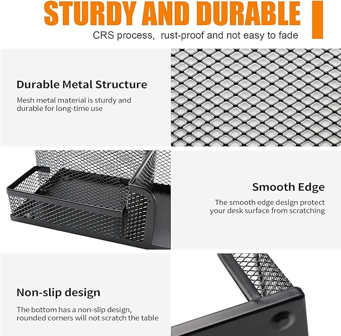 - Light and Solid Design: Crafted from sturdy mesh, these desk organizers are perfect for holding a variety of office supplies. They provide excellent storage for pens, pencils, sticky notes, flash drives, phone and other small items, ensuring everything you need is within reach.