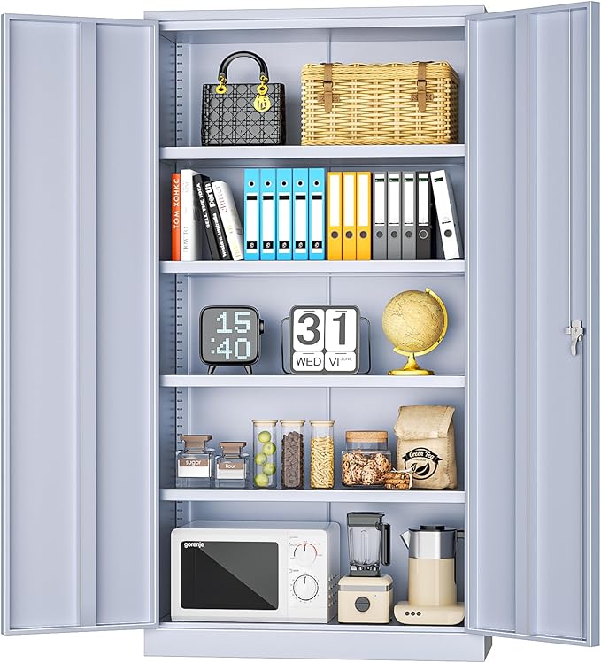 INTERGREAT Tall Metal Storage Cabinet Locking Steel with 4 Adjustable Shelves,72" Lockable Cabinets Lock 2 Doors for Office Garage Supply Home (Cement Gray)
