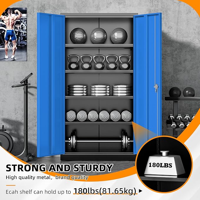 INTERGREAT Storage Cabinet,72”H Garage Steel Locking Cabinets with Doors and 4 Adjustable Shelves, Tall Lockable File Tool Cabinet for Home Office, Metal Classroom Cabinets Basement, Black-Blue