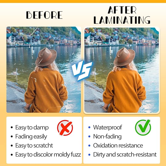 - Excellent Clarity:The laminating sheets only use high-quality adhesive for best transparency to ensure that the photos and documents are clearly visible let important information show through! Round corner design, safe to use