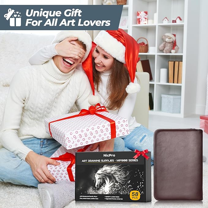- Portable Leather Pencil Case and Perfect Gift: All sketching supplies in a premium top grain leather case, the interior of the leather pouch is made from velvet lining, soft feeling yet tough with a wonderful leather aroma. When you take this art set out to sketch, not only is it easy to carry around, but also provides perfect protection for your drawing tools! In addition, beautifully packaged in a gift box is the best gift for advanced artist, adults, teenagers, beginners, kids, art students, hobbyists on Christmas, Thanksgiving, Birthday, Graduation and Easter Day