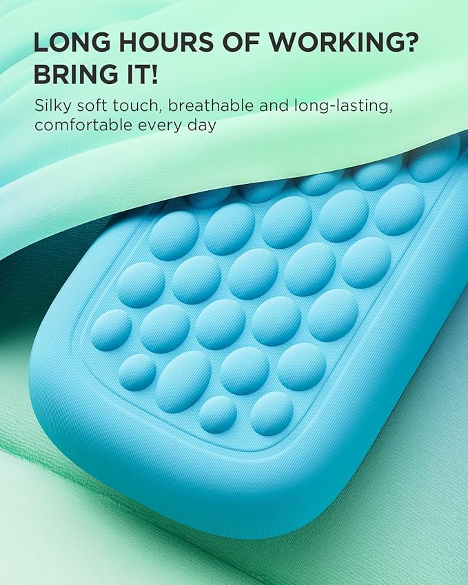 - Comfortable Massage Points : Immerse yourself in supreme comfort with our keyboard wrist rest, featuring an original ergonomic design that effortlessly supports your wrists and arms during use. The numerous massage points on the pads promote better blood circulation and alleviate muscle fatigue. Our wrist rest for computer keyboard stands out as a top choice for keyboard and mouse users seeking comfort