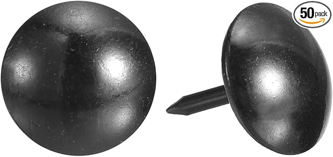 - Specifications: Material: Carbon steel; Color: Black; Diameter of nails head: 11mm/0.44inch; Shank length: 13mm/0.512inch; Package Content: 50Pcs x Upholstery Tacks Nail Pins