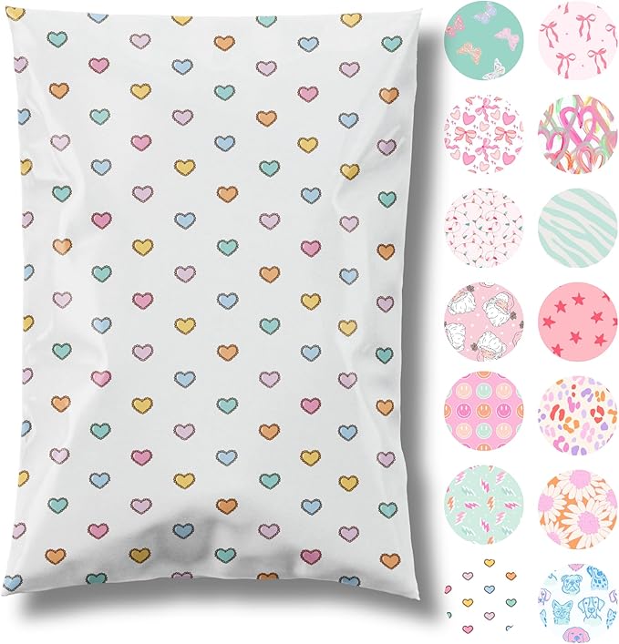 10x13 Designer Poly Mailer 100 Pack Heavy Duty Waterproof Self Seal Shipping Bags for Small Business Large Mailing Envelopes Bulk Tear Resistant Packaging Preppy Hearts