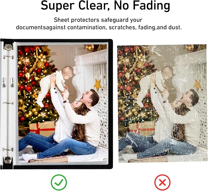 - -Archival Safe and Acid-Free Plastic Sheet Protectors : These clear sheet protectors with a thickness of 120 Micron,designed to keep your important documents, photos, certificates, music sheets, and papers safe from spills, tears, and everyday wear and tear,ensuring your documents remain in pristine condition. And the PVC-free polypropylene material ensures long-term safe use