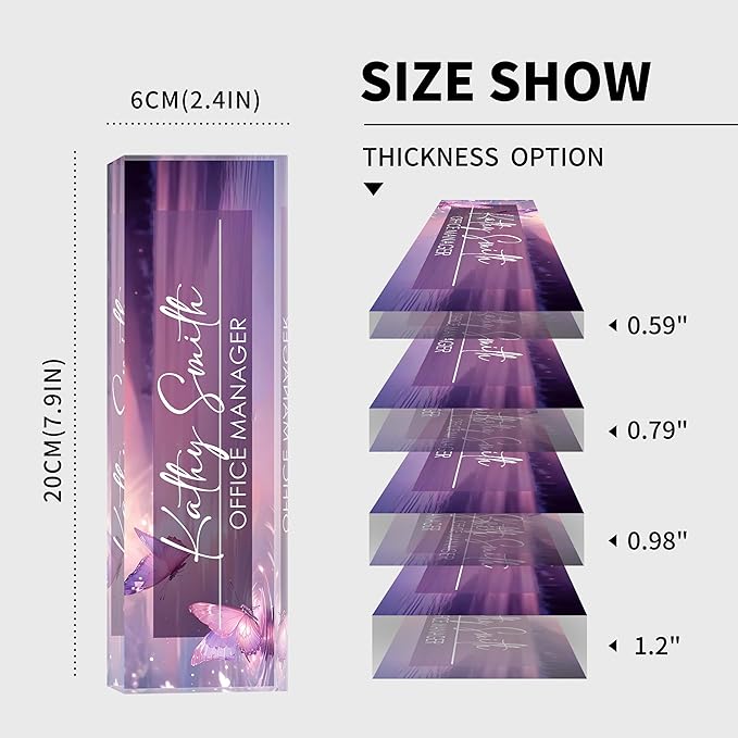 - 【High-Quality Acrylic Material】Our factory uses high-quality solid acrylic blocks to make name plates, and uses the latest high-definition UV printing machine to ensure that the content on the acrylic name plate is clear and not easily faded. So it will stand out on any desk, fully reflecting your professional ethics.