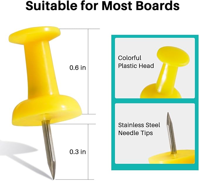 - 【Premium Quality Craftsmanship】 - Meticulously crafted from top-notch materials with precision, these thumbtacks guarantee maximum durability, strength, and performance. The plastic heads and robust steel points ensure that they retain their functionality even during frequent use, without any risk of bending or breaking