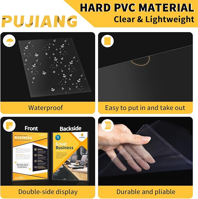 - CLEAR DOCUMENT SLEEVES SIZE - Suitable for displaying 8.5"x11" standard letter size paper, plastic display sign thickness 0.04",can hold about 4 sheets