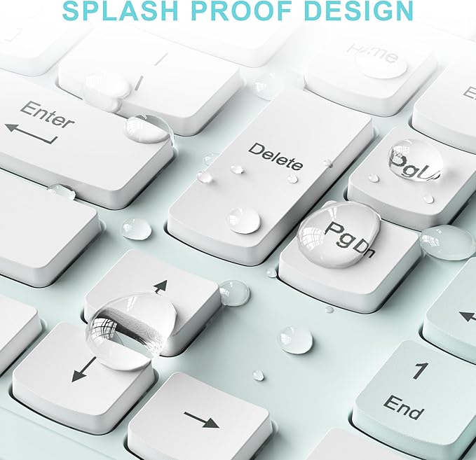 Wireless Keyboard and Mouse Combo, Full-Sized Wireless Keyboard and Adjustable DPI Mouse, 2.4GHz USB Receiver, Keyboard and Mouse for PC, Windows, Desktop, Laptop (Mint Green and White)