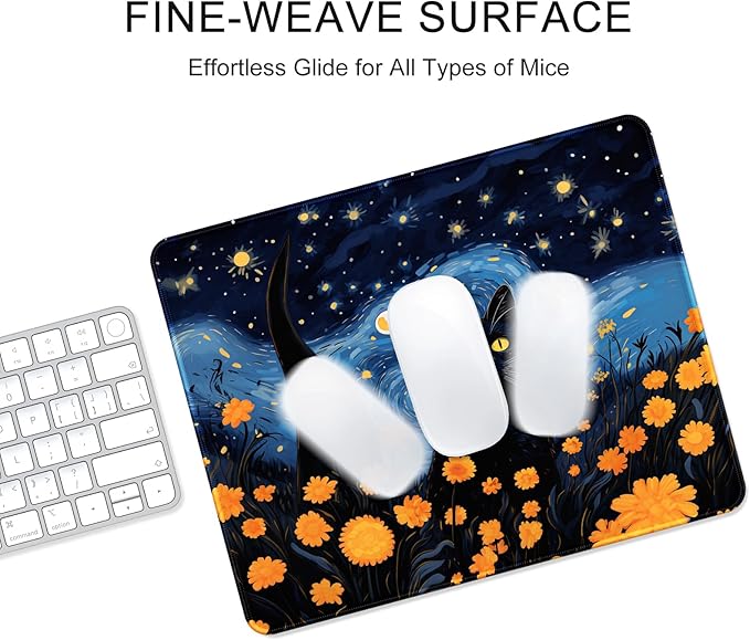Auhoahsil Mouse Pad, 12 x 10 in Van Gogh Style Cat Theme Computer Mouse Pad for Desk, Premium-Textured Non-Slip Rubber Stitched Edges Waterproof Square Mouse Mat for Gaming Work Wireless Mice