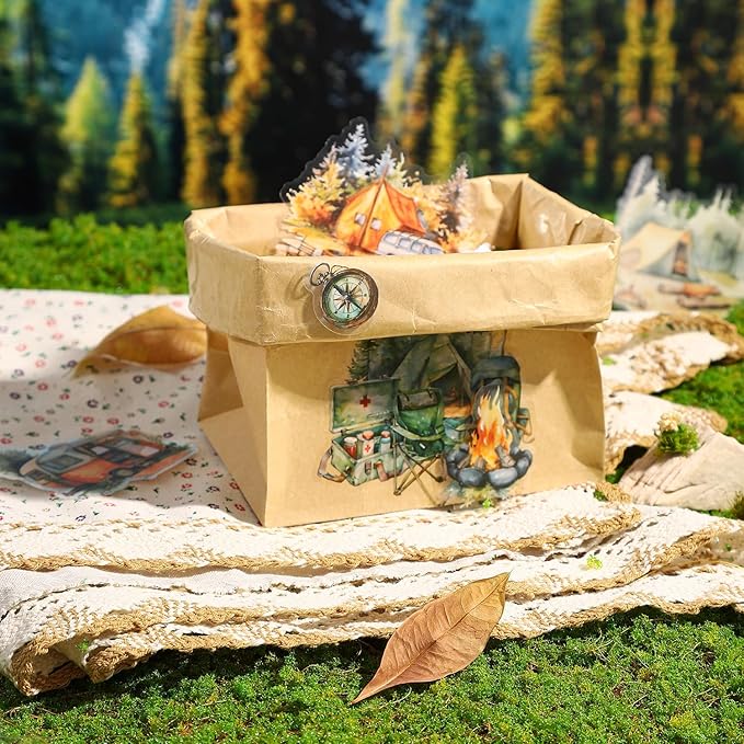 Forest Journey Camping PET Stickers, 120 Pcs Outdoor Adventure Ephemera for Scrapbooking, Journaling, DIY Crafting, and Art Supplies