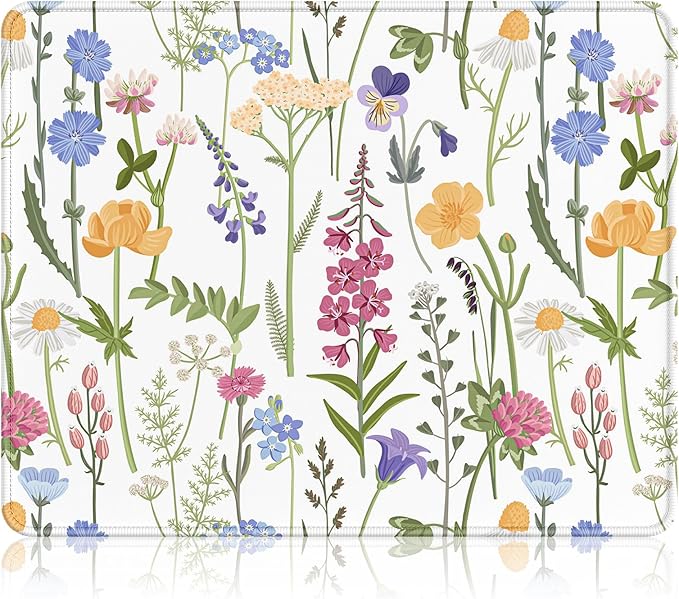 Auhoahsil Mouse Pad, 12 x 10 in Simple Flower Theme Computer Mouse Pad for Desk, Premium-Textured Non-Slip Rubber Stitched Edges Waterproof Square Mouse Mat for Gaming Work Wireless Mice, White