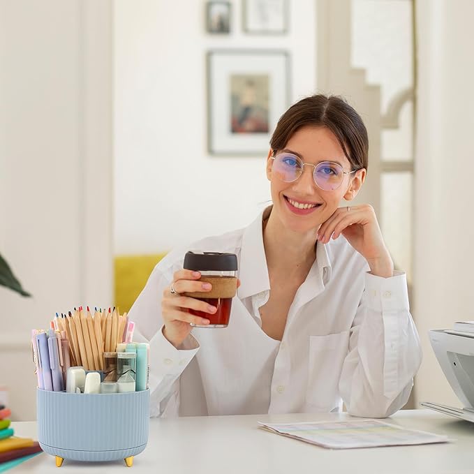 - Rotating Pen Holder: This pencil and pen holder combo offers a 360 degrees rotation feature, ensuring easy access to your writing tools, and making it even more convenient to find what you need