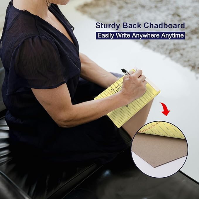 - 【Portable Size】This 5 x 8 inch legal notepad is the perfect size to carry out. It's large enough to take detailed notes yet compact enough to easily fit into a briefcase, backpack, or handbag, making it an ideal choice for work and study on the go. And the canary yellow paper is very friendly to the eyes and helps reduce eye fatigue while writing.