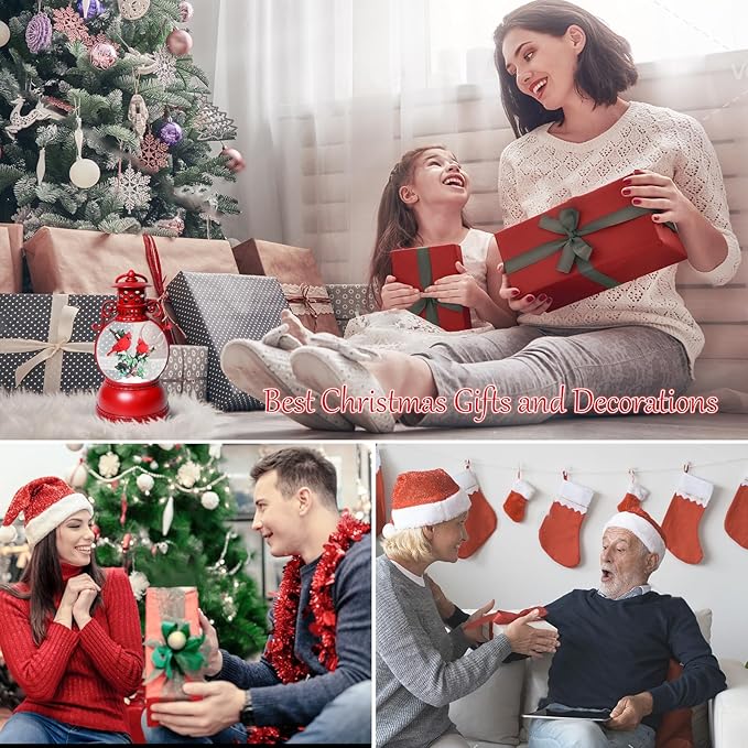 Christmas Snow Globes, Cardinal Christmas Snow Lantern with 8 Songs, 6H Timer Battery & USB Powered Glitter Music Box for Christmas Table Decorations Home Decor