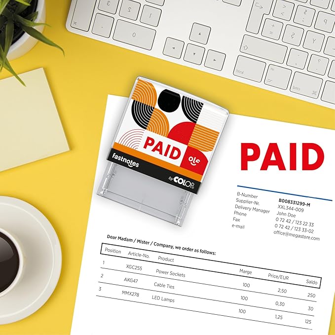 Fastnotes Paid Self-Inking Rubber Stamp by COLOP - Great for Office Documents, Notary, Warehouse, Accounting Paperwork, Business, and Legal Documentation - Red Ink (Paid- Red)