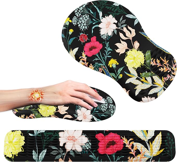 MEKASS Ergonomic Mouse Pad and Keyboard Wrist Rest Set, Super Soft Memory Foam Desk Wrist Support for Computer Keyboard, Non-Slip Arm Palm Rests Cushion for Typing Gaming Office (Jungle of Flowers)
