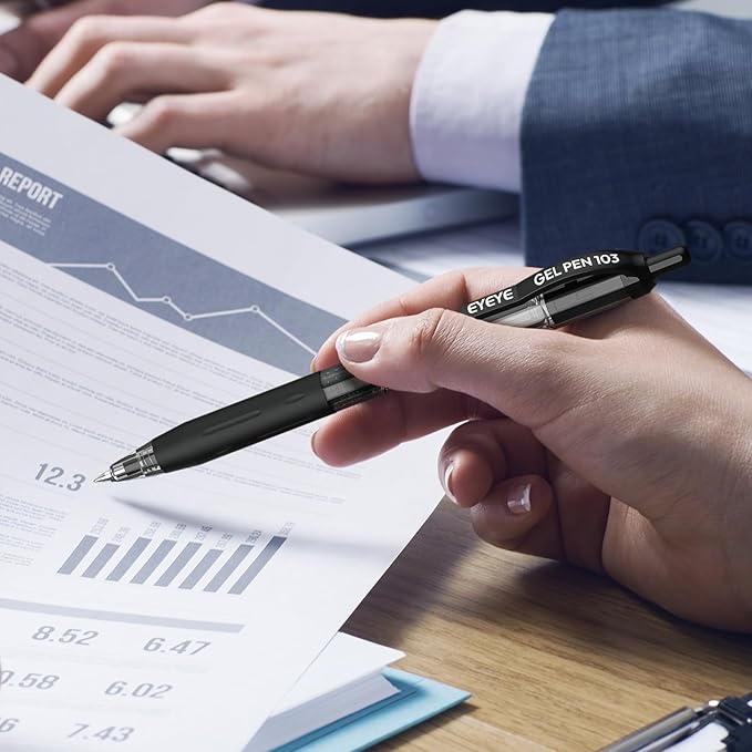 - 0.7mm Medium Point Pen: EYEYE black gel ink pens use high quality pen tips to keep writing smooth, and the blue ink quick dry. Ideal for writing, journaling, note-taking, underlining, sketching and so on.