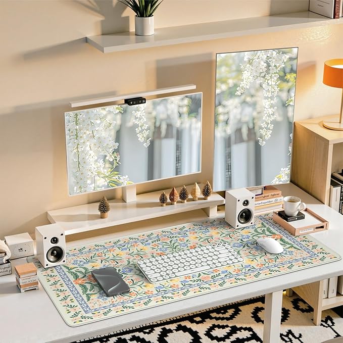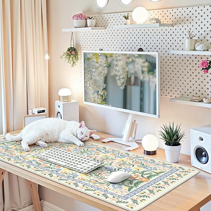 - Extended Dorm Desk Cover Mat Size: Large desk pad mat's measure: 35.4 x 15.7 inches. The adorable keyboard and mouse pad is large enough to have a mouse, gaming keyboard, and other desk items Just immerse into your work or games. It's a good desk skirts for teacher desk