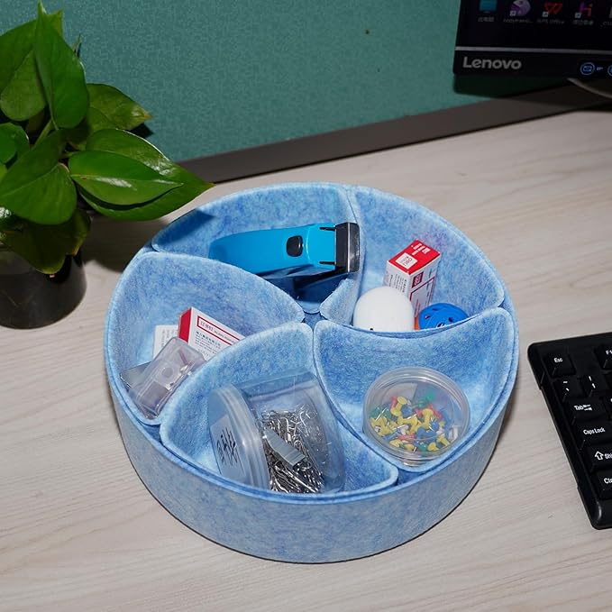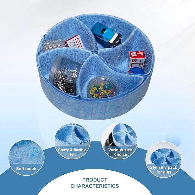 Felt Desk Drawer Organizer Tray,8 Pack Office Desk Drawer Dividers,Felt Drawer Round Storage Box For Saving Space,Makeup Drawer Organizer Bins.(Blue)