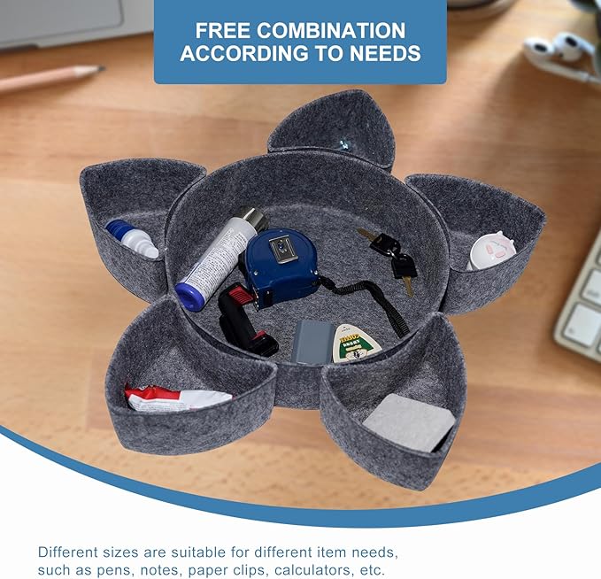 - [Keep drawers organized] Keemute felt storage boxes can be nested with each other to meet the storage needs of items of different sizes, greatly improving the cleanliness of drawers and allowing you to quickly find what you need.