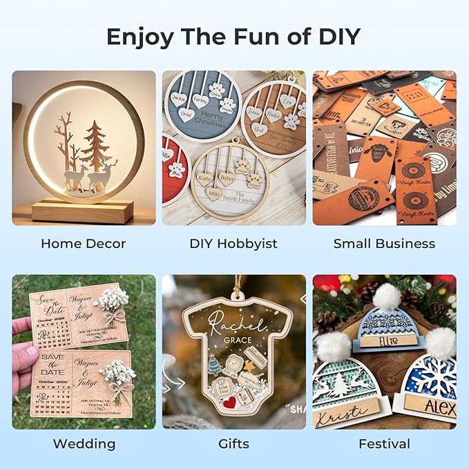 - 【Perfect for Custom Projects】Ideal for custom gifts, home décor, or starting a small business, the 5W wood engraver offers powerful performance and versatility. It handles various materials, delivering precise results for all your creative needs.