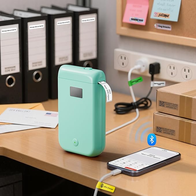 - Save Time and Money: The inkless label maker uses advanced thermal printing technology, equipped with a 203DPI resolution print head, you can enjoy high-definition printing without relying on ink or toner. This not only saves you money, but also the worry of ink smearing labels. The thermal label maker has a built-in rechargeable battery with 1500mAh large capacity, which can work for a long time