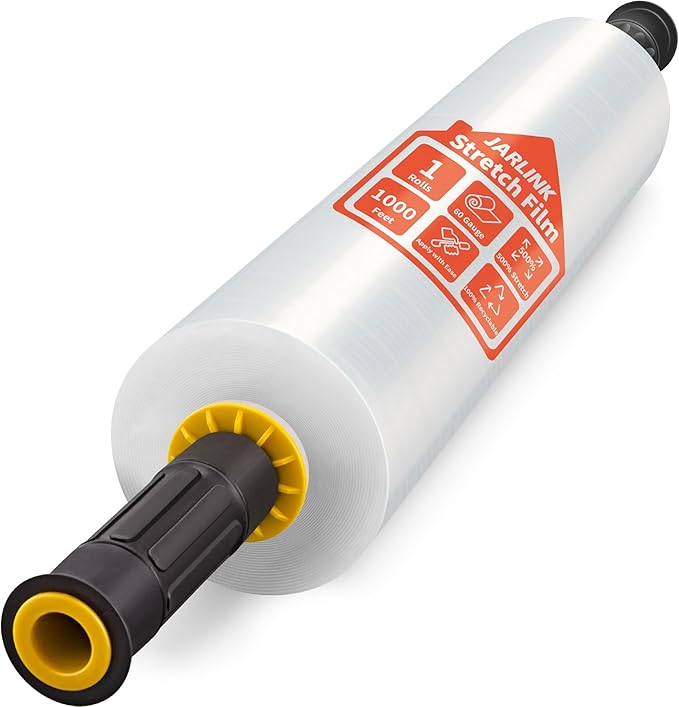 JARLINK Stretch Film, 15 Inch x 1000 Feet Shrink Wrap for Pallet Wrap, Industrial Strength Stretch Wrap with Handles, Moving Wrapping Plastic Roll, 60 Gauge, 1 Pack, Clear