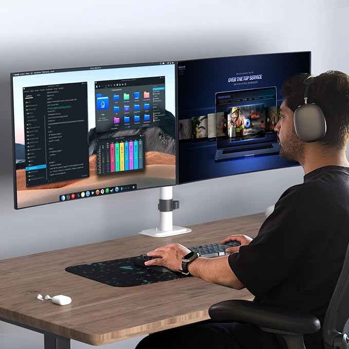 Suptek Dual Monitor Desk Mount, Adjustable Dual Monitor Arm for 2 Monitor Screens up to 38 inch, Extra Tall 15.75" Pole Monitor Stand for Desk, Holds up to 22 lbs,White(MD9442MW)