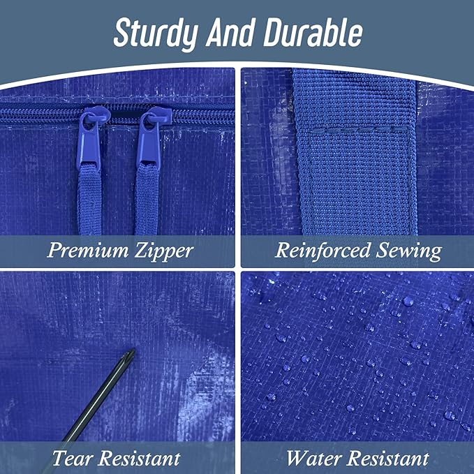 6 Pack Extra Heavy Duty Large Moving Bags with Strong Zipper & Comfortable Handles, Sturdy & Durable Clothes Storage Bags Totes Bins, Packing Moving Boxes for College Supplies, Blue
