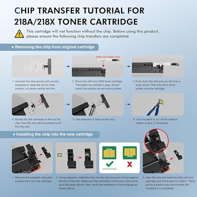 - No chip: Cool Toner w2180 218a 218x toner cartridges 4 pack do not have chips, need to transfer oem 218a or 218x toner cartridge chip to them. Please refer to manual 'W2180&2190A/X Series Chip Transfer Instruction' to complete the chip transfer. The W2180 and W2190 are the same product.
