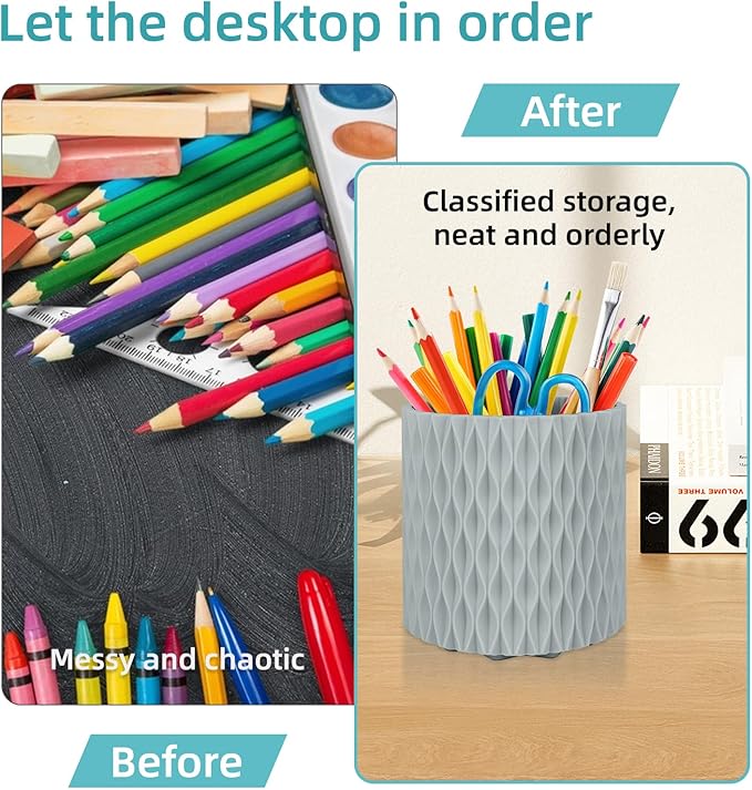 - Classic Grey Tone Design: This desktop pen holder features a classic and understated grey color, which is both simple and fashionable, suitable for various home, office, and school decoration styles. It not only adds a steady touch to your desktop, but also showcases your taste and style. Pen holder measures 4.8inΓ4.6inΓ4.6in.
