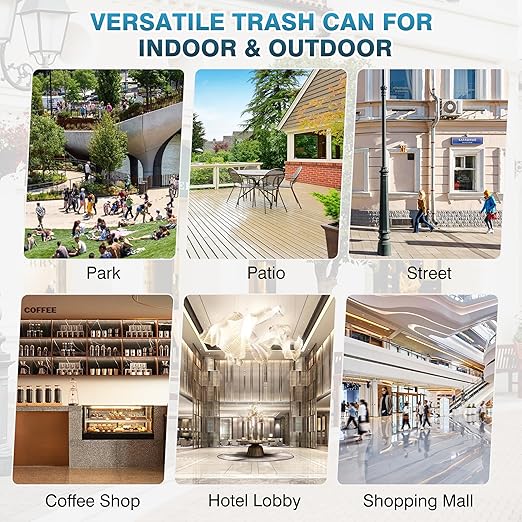 - 【High Durability Steel Trash Bin】Crafted from commercial-grade, anti-rust, heavy-duty galvanized stainless steel, this metal trash can is built to endure all weather conditions and demanding environments, making it ideal for both indoor and outdoor use.