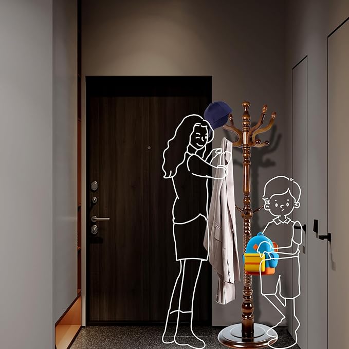 - 【A CLEAN AND TIDY HOME】Do you have the same trouble of disorderly arrangement of things? This freestanding coat rack can make your home look neat.Leave it by the door and use it when you go home or out, easily hanging up your jackets and bags, hat or coat,saving you time to organize.I believe you will love it!