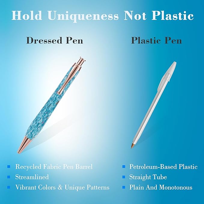 - Elegant, Refillable: Made with recycled fabric and refillable black ink, this pen is a sustainable yet luxurious choice. A perfect blend of eco values and timeless function in one beautiful writing tool