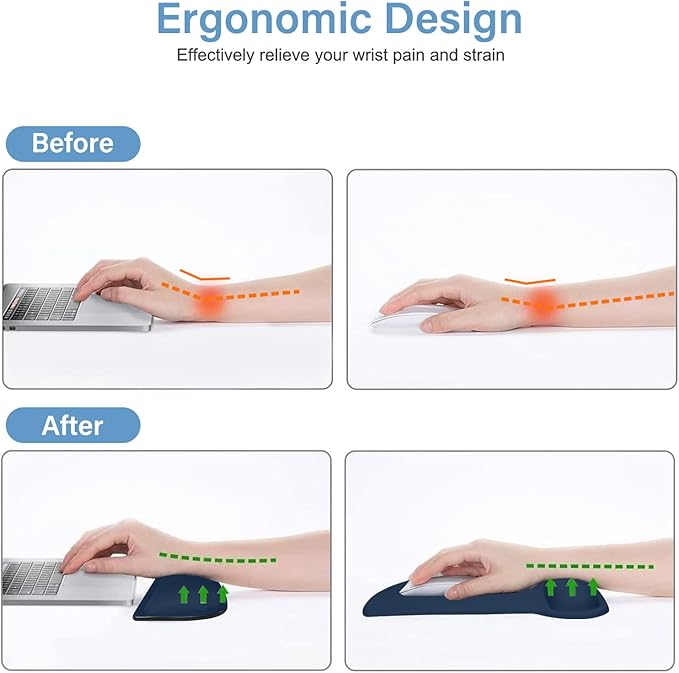 - Ergonomically designed with breathable/durable neoprene cloth and raised memory foam. Efficient for easy typing & pain relief. Offers soft support to relieve pressure and pain of your wrist, keep your wrist in a natural and comfortable state.