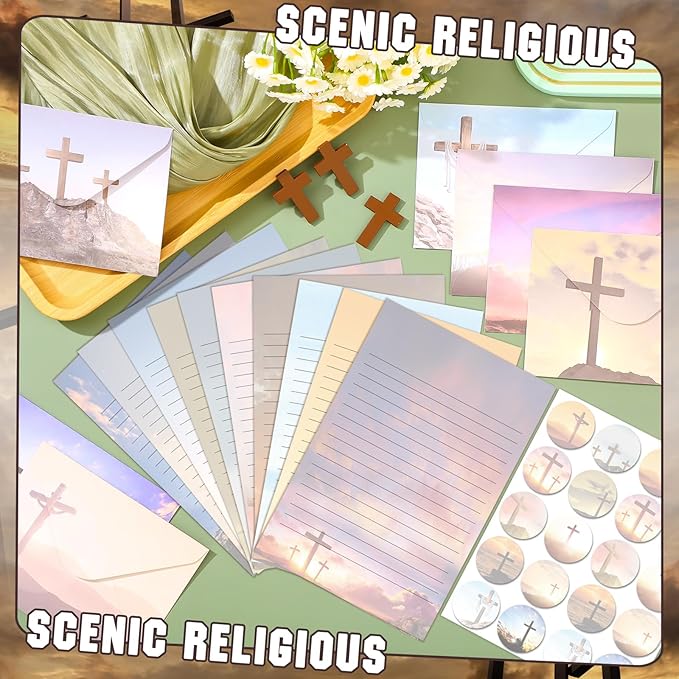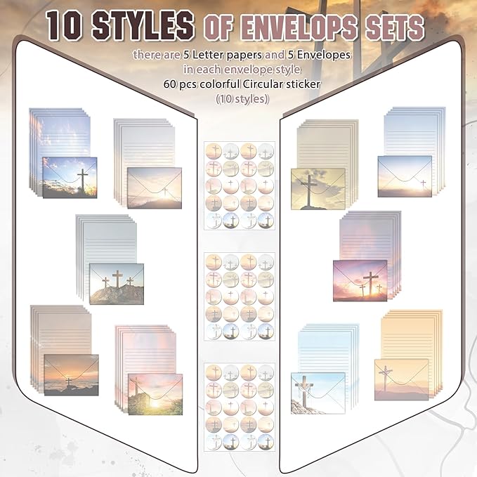 - Diverse Scenic Religious Designs: the bible paper and envelopes set has 10 different styles, beautiful and meaningful, designed with full scenic patterns of the cross, can make your letter more attractive, and you can choose different styles according to your own preferences to write letters to different partners