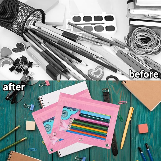 - 【3-RING】The intimate 3-ring buttonhole design can be easily placed in a standard 3-ring binder pocketes. Easily pack all your odds and ends and collect them together.