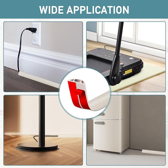 - Strong Adhesive Backing: The cord cover floor has a strong adhesive tape, making installation easy. Simply cut the desired length and place the wire in the channel. Peel off the film and stick it to any floor or wall edge, including hardwood floors, tiles, or carpets.
