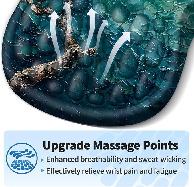 - Ergonomic Mouse Pad: The innovative ergonomic 8-degree slope and massage bump design perfectly support the wrist and palm. Massage bump design can effectively relieve wrist pain and fatigue, improve carpal tunnel syndrome (CTS), strengthen the air circulation between wrist and mouse pad, prevent sweating, and keep your wrist in the most comfortable state.It's your best choice of desk mouse pads.