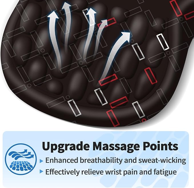 - Ergonomic Mouse Pad: The innovative ergonomic 8-degree slope and massage bump design perfectly support the wrist and palm. Massage bump design can effectively relieve wrist pain and fatigue, improve carpal tunnel syndrome (CTS), strengthen the air circulation between wrist and mouse pad, prevent sweating, and keep your wrist in the most comfortable state.It's your best choice of desk mouse pads.