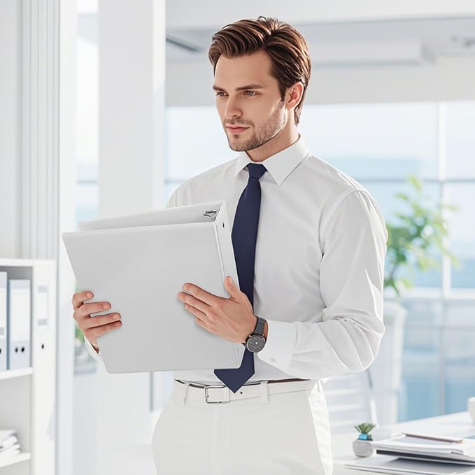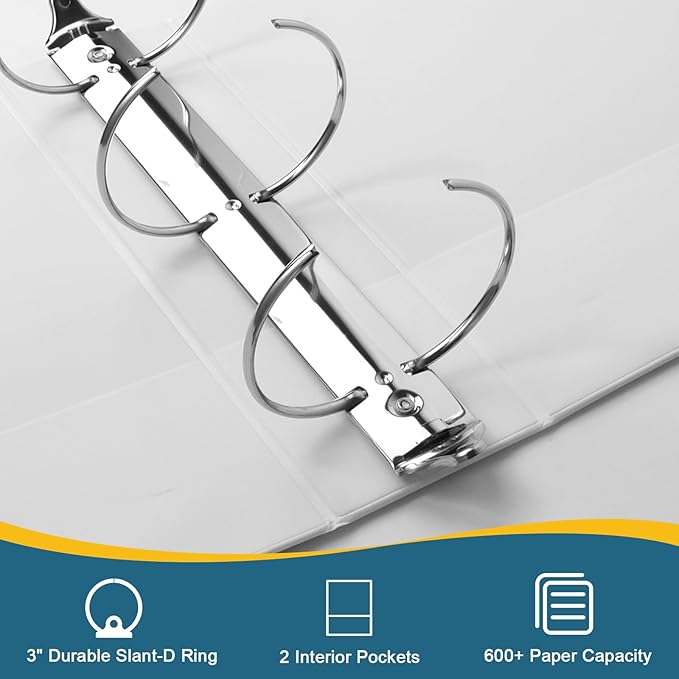 3-Inch 3 Ring Binder, Standard 3" Round Ring Binder Fit Letter Size Paper, Presentation View Binders, White, 2-Pack