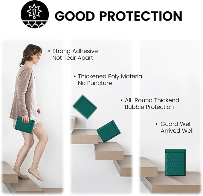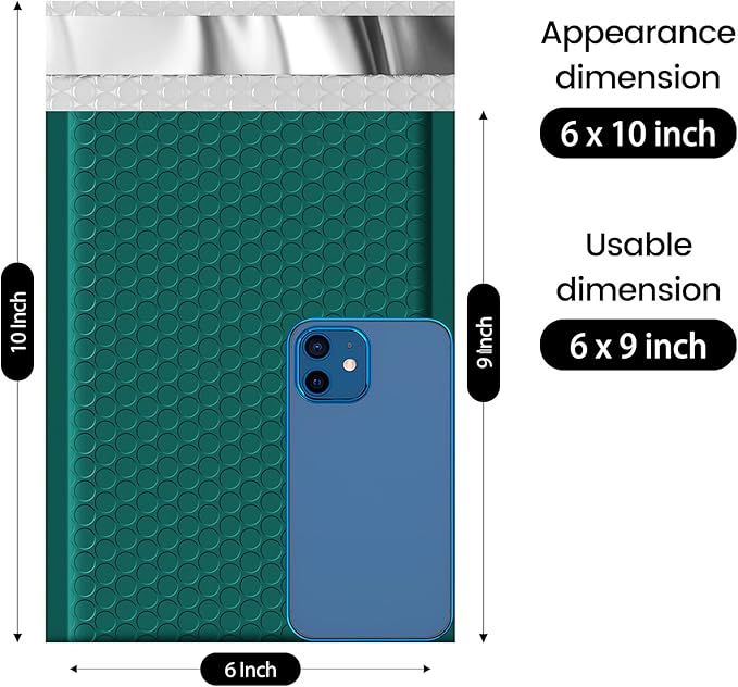 - Waterproof & Self Sealing: The bubble mailer 6x10 has real water resistance with strong self-adhesive, Our froest green bubble mailers is using four-season adhesive, which can maintain strong stickiness throughout the year.