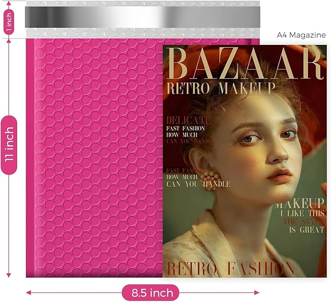 - 【Multipurpose Large Hot Pink Bubble Mailers】You can affix postal stickers or labels on the matte surface of bubble envelopes easily. Since the 8.5x12 bubble mailers are crushing resistance, It is very suitable to transport books, clothing, jewelry, makeup,photos, frames,magazines ,crafts and more.