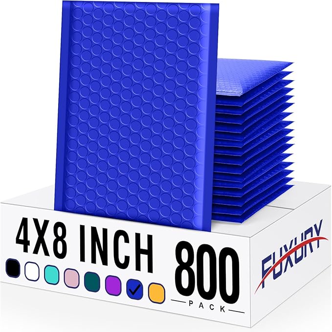 Fuxury Bubble Mailer 800Pcs 4x8 Bubble Mailers Bulk Royal Blue Shipping Padded Envelopes Usable Size 4x7” Waterproof Mailing Envelopes for Mailing,Packaging, Small Business #000