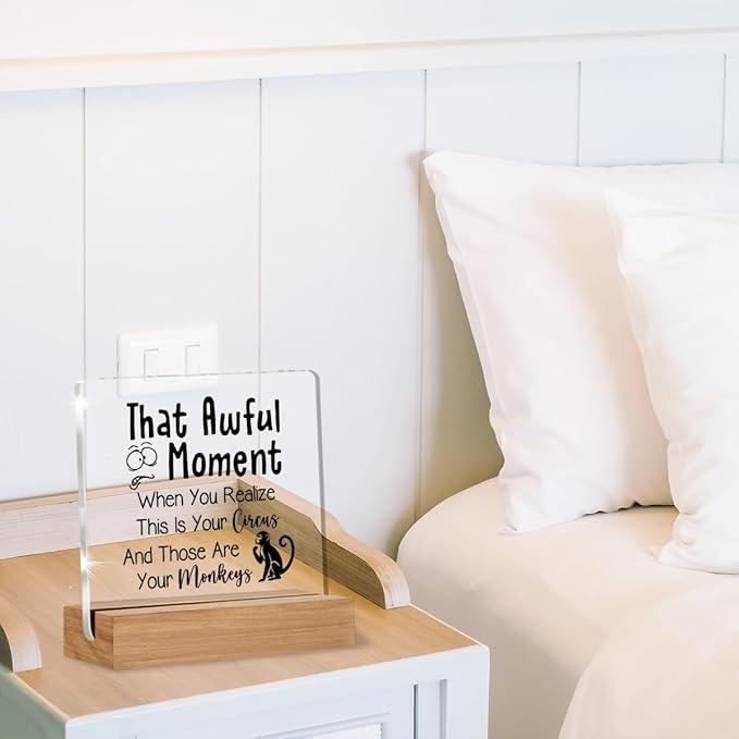 - Exquisite Design: This sign is made of transparent acrylic, making printed patterns display clear images, which are resistant to fading and scratches. The base of each sign is made of sturdy wood, which is lightweight, tasteless, and reliable. Fine workmanship would give you a long-lasting application