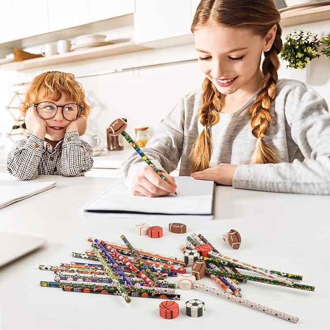 - Package includes: the package contains 48 pieces of sports pencils and 48 pieces of mini erasers, enough to use and share with family or friends on different occasions, birhtday gifting use.