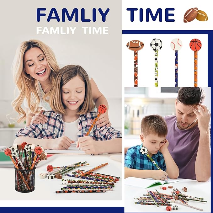 - Sports Theme Design: these sports pencils and erasers are carefully designed with sports theme, which are novel in style and will bring you a good experience, The top of the pencil is designed with an eraser for your convenience. They cater to the tastes of most kids and are favored by them, The top of the pencil is designed with an eraser for your convenience.