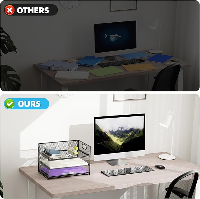 - 【PREMIUM QUALITY】The mesh desktop file organizer is made of lightweight durable metal mesh and reinforced with a solid steel frame that makes it have long-lasting strength and reliable performance.