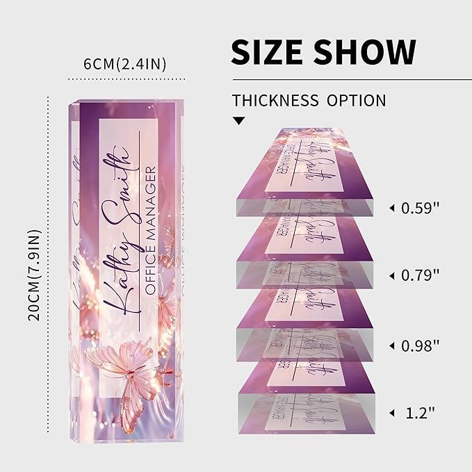 - 【High-Quality Acrylic Material】Our factory uses high-quality solid acrylic blocks to make name plates, and uses the latest high-definition UV printing machine to ensure that the content on the acrylic name plate is clear and not easily faded. So it will stand out on any desk, fully reflecting your professional ethics.